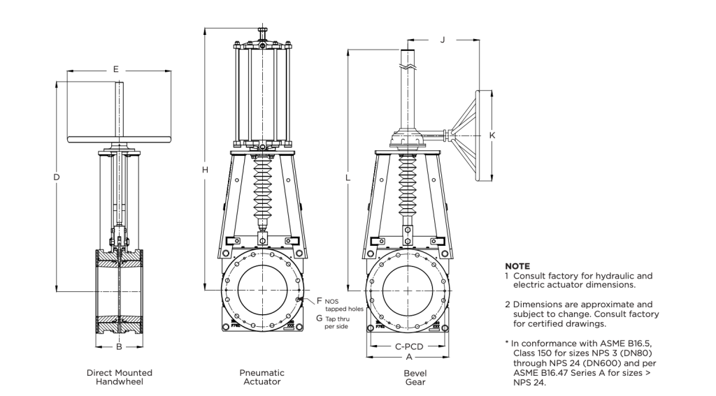 | 闸门材料 304、316、317 不锈钢、SAF 2507、SAF 2205、17-4PH、Hastelloy® C、Monel®、钛 | 阀座材料温度范围 天然橡胶:165°F / 74°C Buna-N:194°F / 90°C EPDM-HT:302°F / 150°C |