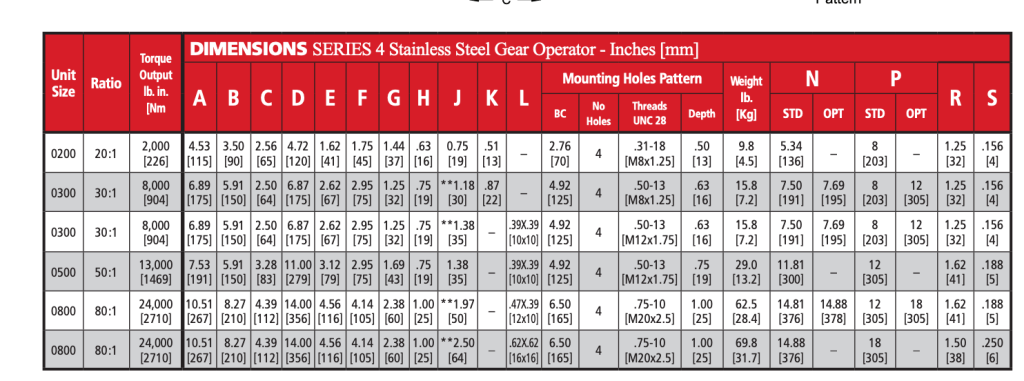 Bray 博雷阀门公司自豪地提供 4 系列不锈钢钢制齿作员,用于四分之一的手动操作旋转阀。系列 4 采用不锈钢设计钢制外壳、输入轴和手轮,用于适用于高腐蚀性环境,卫生、啤酒厂和制药应用。这装置适用于开关和节流服务。4 系列不锈钢齿作装置具有不同的齿轮比 – 提供扭矩输出范围为 2,000 至 24,000 磅。温度。温度范围为 -4°F (-20°C) 至 250°F (120°C)