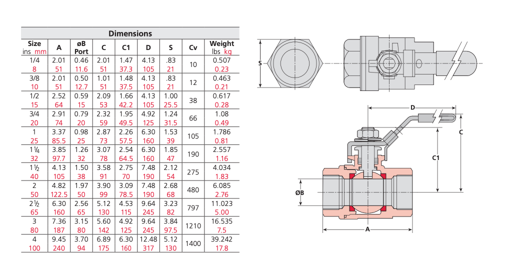 | 尺寸范围 1/4 – 4“ (8 – 100mm) | 阀体材料 ASTM A351 Gr CF8M |