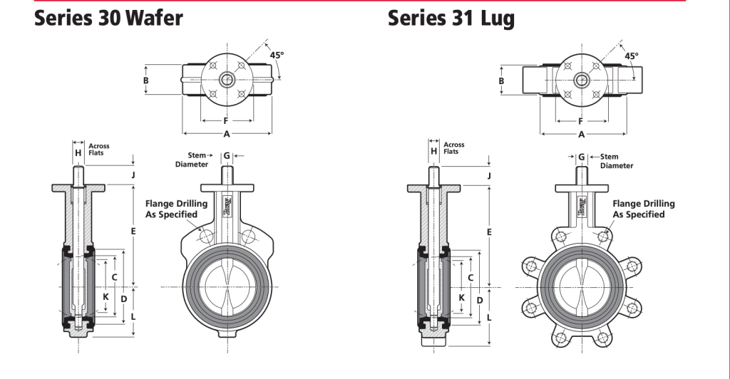 30/31 系列尺寸 2“– 20” (50mm–500mm)Bray 提供双“D”精密加工平面茎和圆盘。30/31 系列内置,非接液连接消除了暴露的外部圆盘到阀杆连接。阀瓣和阀杆连接可最大限度地减少滞后并产生最大的力量交战。所有阀杆设计包含防爆裂功能。