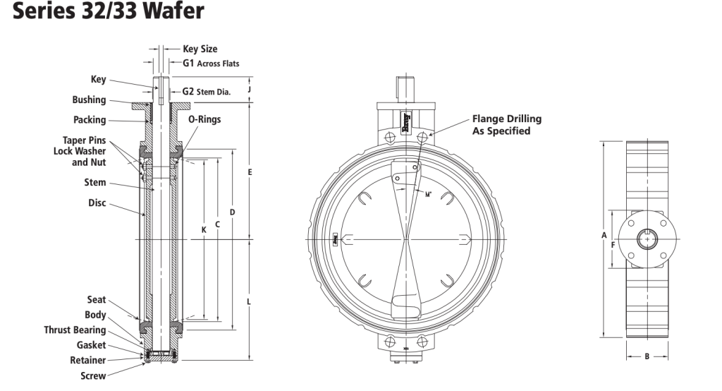 - F. 阀体:全法兰式单体设计 所有阀体均按照 ASME 125/150、PN10、PN16 或其他国际法兰标准进行钻孔。也可提供对夹式阀体。